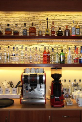 Projekt baru w Resaurant & Cafe Ecru miał na celu zmianę jego lokalizacji. Uwarunkowane było to chęcią powiększenia przez Inwestora sali konsumpcyjnej dzięki której restauracja mogła poszerzyć swoją ofertę. Pomino przeznaczniu mniejszej powierzchni na nowy bar udało się zmieścić na niej starą funkcję a dzięki nadaniu nowej formy i zastosowaniu odpowiednio stonowanego oświetlenia stał się on wizytówką lokalu. Zastosowane materiały nie tylko pozwoliły wpisać mu się w charakter wnętrza ale także stworzyły przyjazną i ciepłą atmosferę.